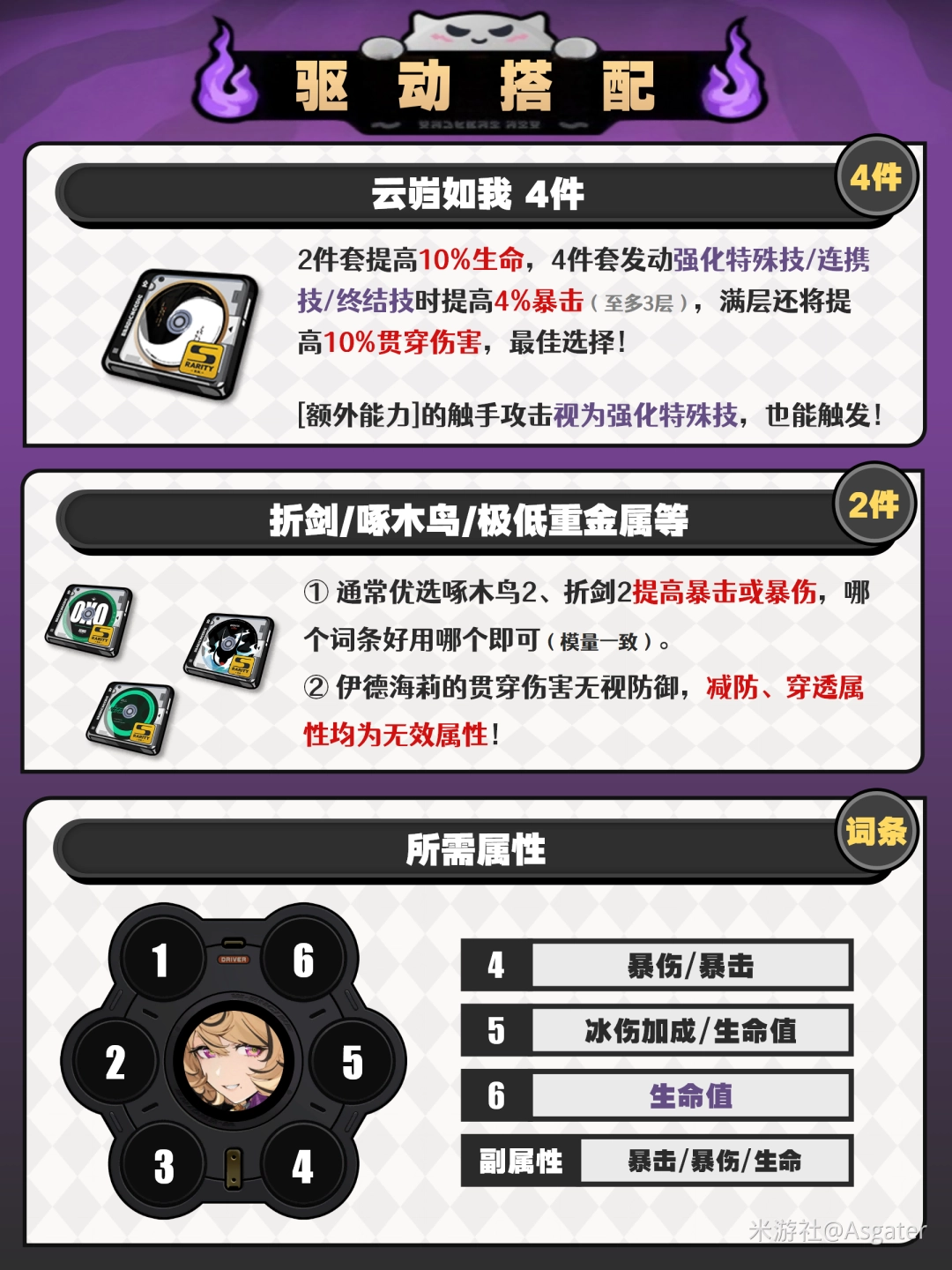 ③ 4号盘优先暴击/暴伤,伊德海莉的生命收益低于双暴收益。