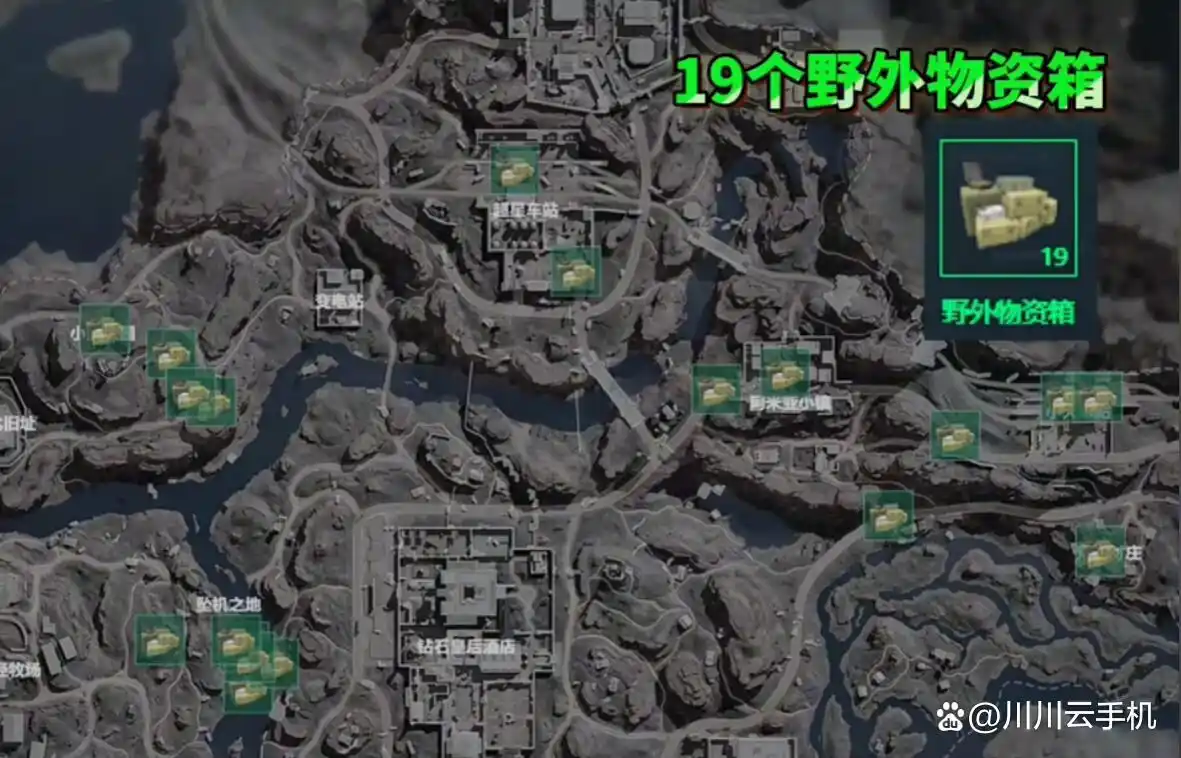 长弓溪谷 (19箱): 资源最丰沛! 地图超大,物资箱极多,无论复活点在哪,附近必有收获,综合效率极高。