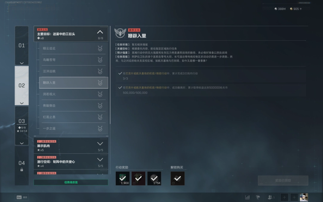 2、在巴克什或航天基地的机密/绝密行动中,成功撤离时,累计取得收益达到500000哈夫币