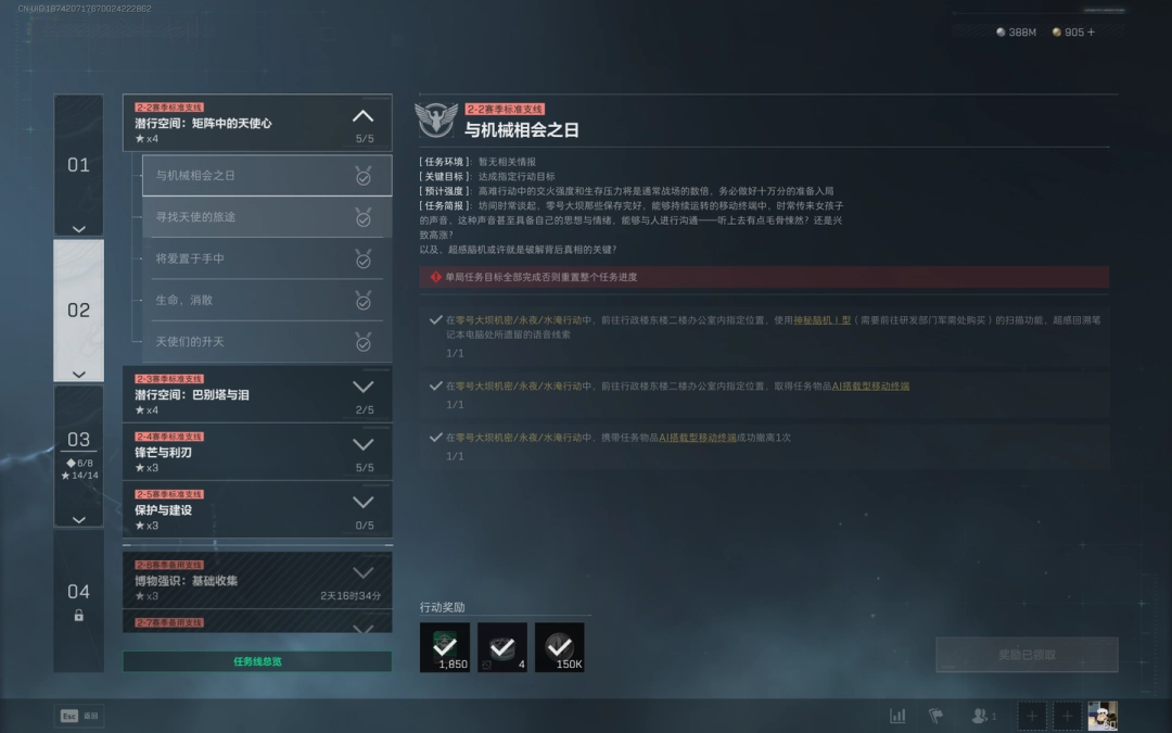 3、在零号大坝机密/永夜/水淹行动中,携带任务物品【AI搭载型移动终端】成功撤离1次
