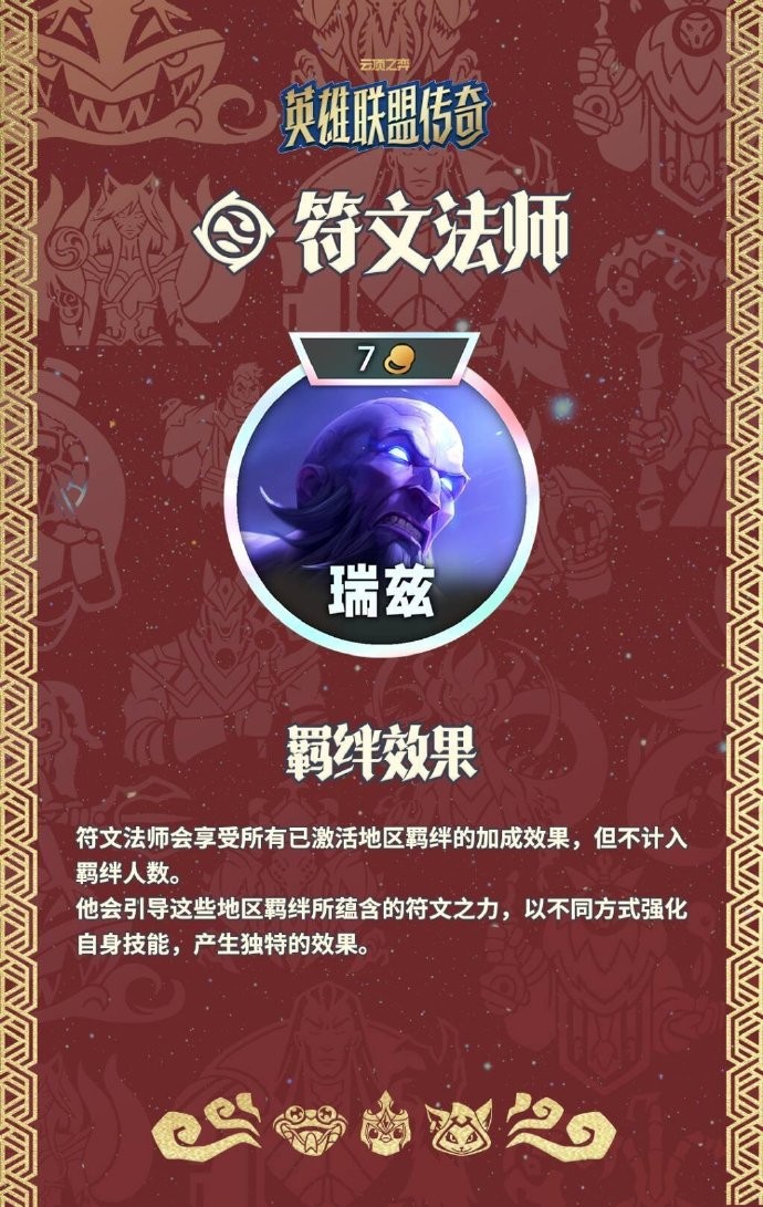 符文法师会享受所有已激活地区羁绊的加成效果,但不计入羁绊人数。