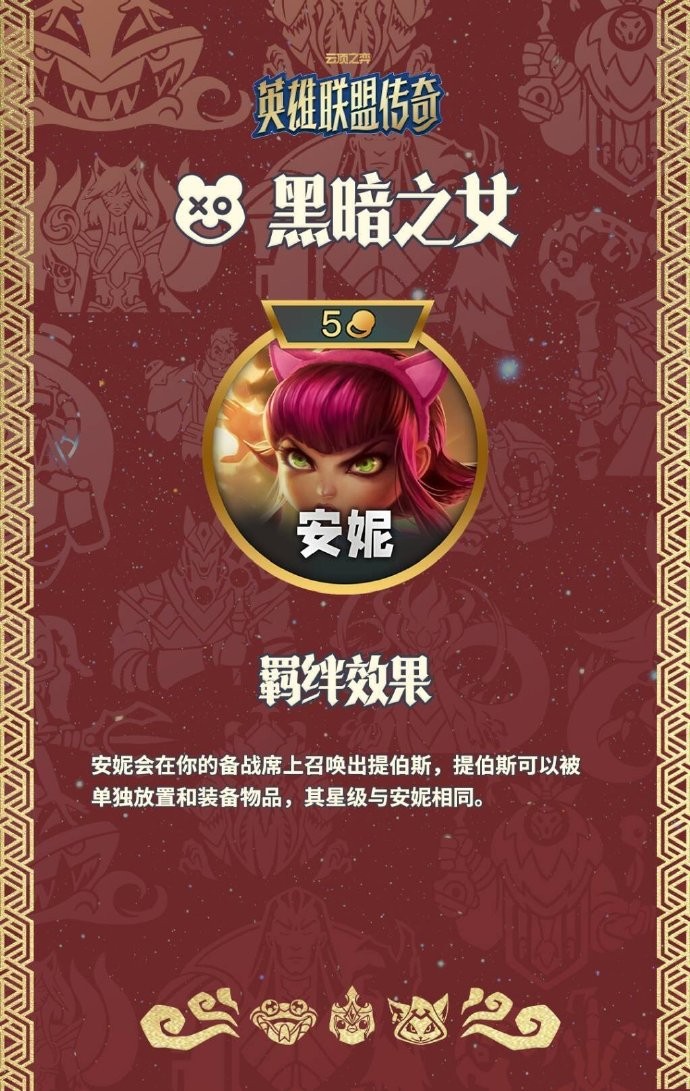 安妮会在你的备战席上召唤出提伯斯,提伯斯可以被单独放置和装备物品,其星级与安妮相同。