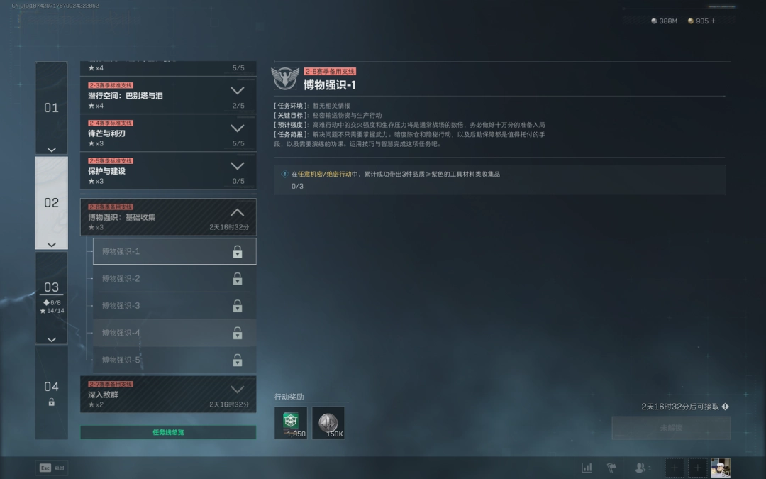 1、任务目标:在任意机密/绝密行动中,累计成功带出3件品质≥紫色的工具材料类收集品