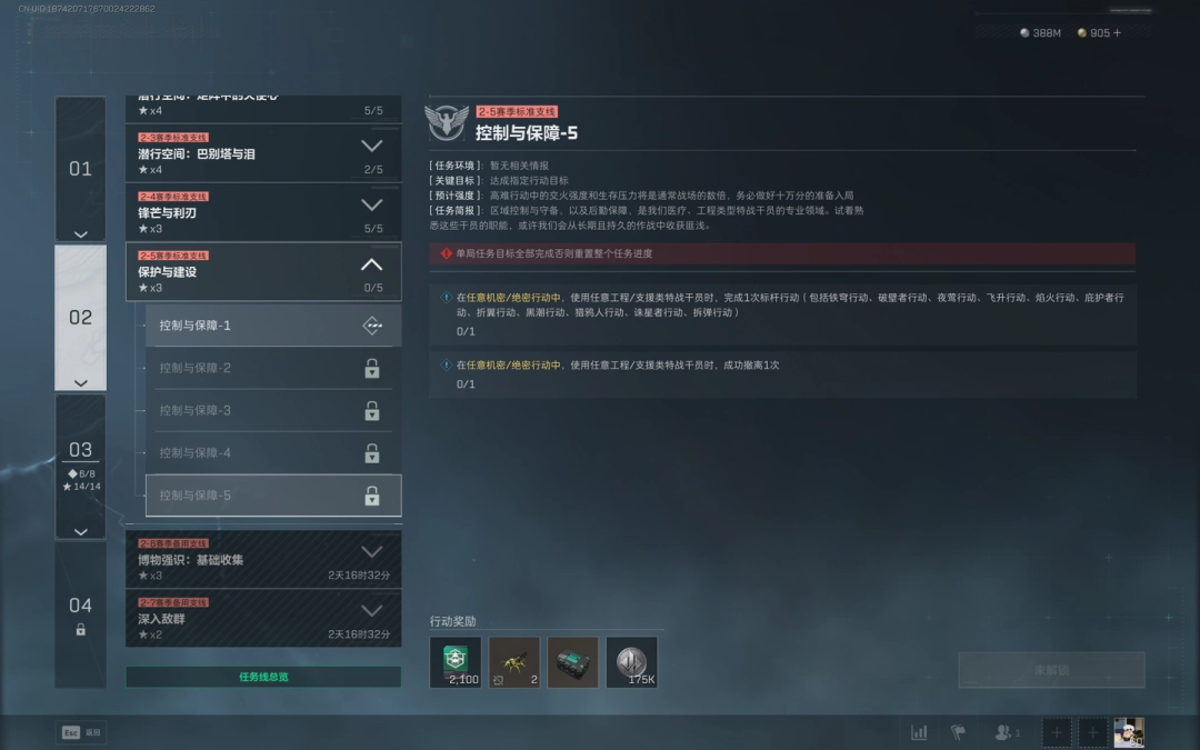 2、在任意机密/绝密行动中,使用任意工程/支援类特战干员时,成功撤离1次