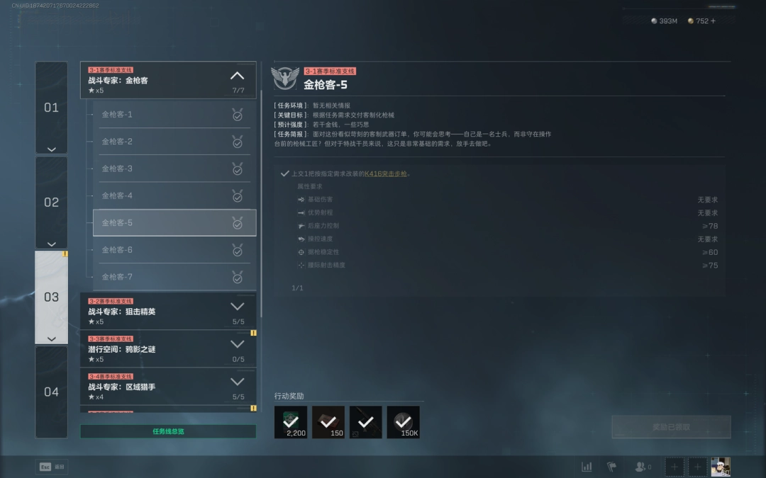 上交一把符合属性的K416突击步枪。