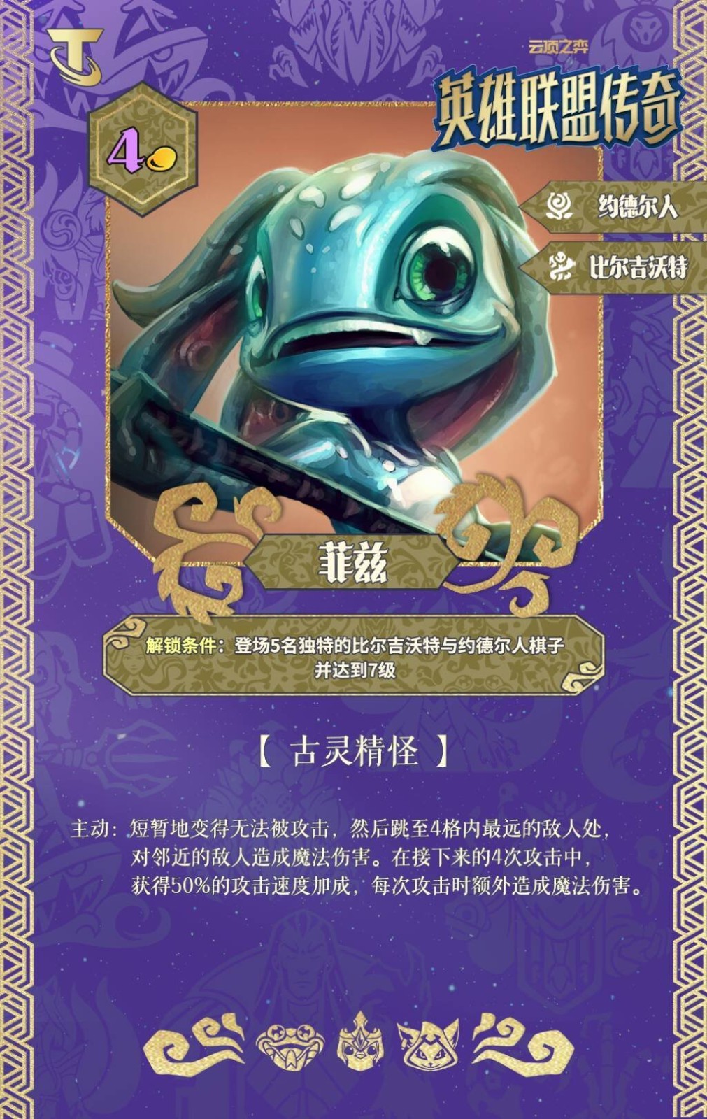 解锁条件:登场5名独特的比尔吉沃特与约德尔人棋子并达到7级