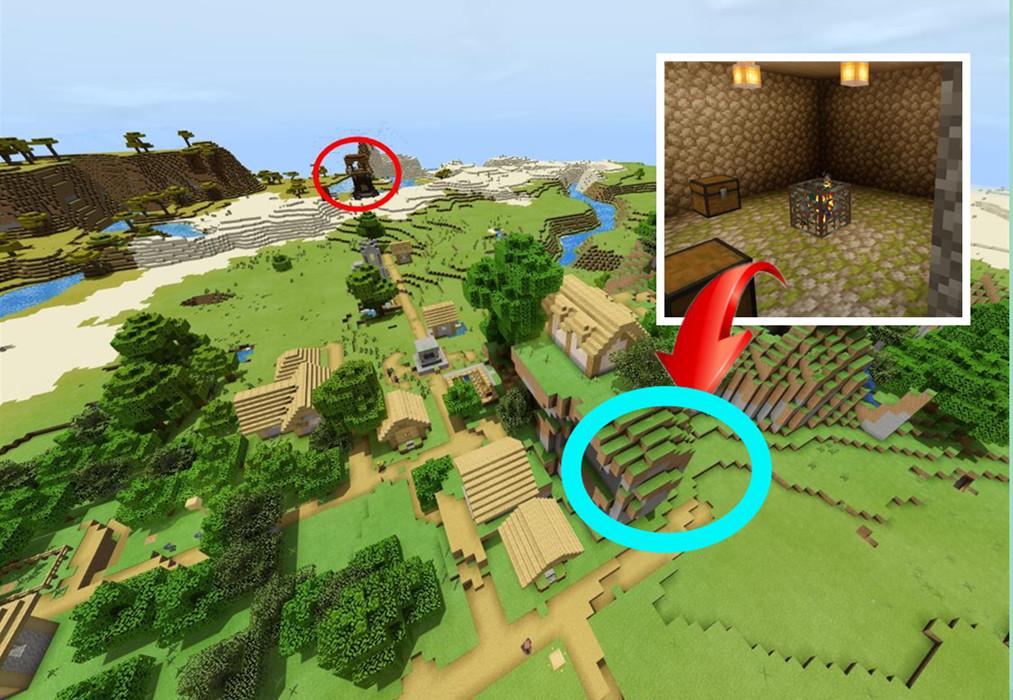 最关键的是在村庄下面还有两个刷怪笼,竟然有的同学说刷怪笼用处不大,其实这种说法很荒谬,因为刷怪塔不但能够带给我们经验和怪物掉落的物资,就刷怪笼里面本来就有的2个宝箱就有不少物资了,所以这个村庄当作出生点基地是完全没有问题。