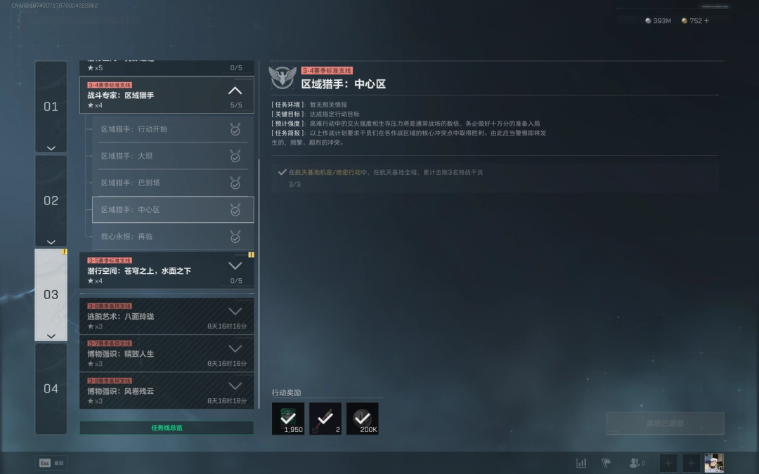 1、任务目标:在航天基地机密/绝密行动中,在航天基地全域,累计击败3名特战干员
