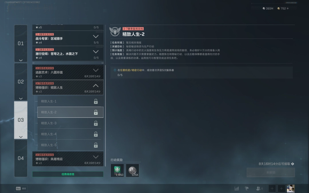 1、任务目标:在任意机密/绝密行动中,成功首次开启5次服务器