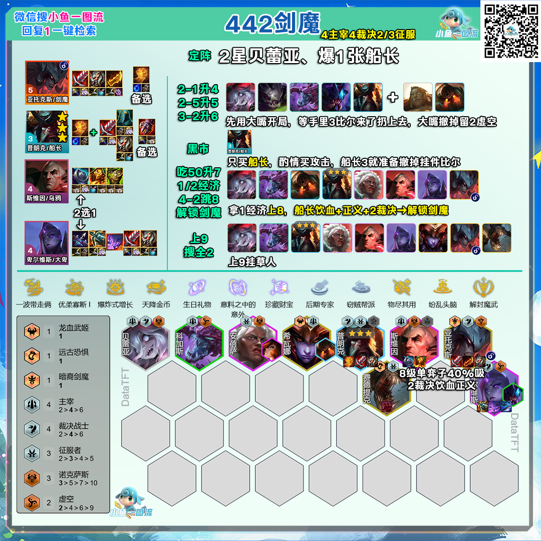 云顶之弈S16版本英雄联盟传奇主题,在新赛季会增加很多新的羁绊和棋子,还有不少老羁绊,老英雄的回归,那么有不少小伙伴好奇新赛季有什么强力阵容,下面就给大家带来s16 442剑魔阵容推荐。