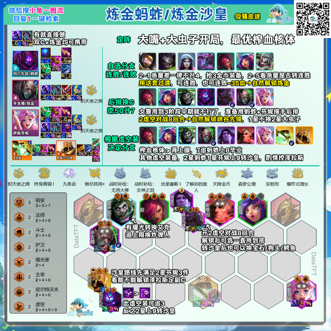注这套是需要看虚空装备有没有榨血核体决定路线的(肾上腺一般,估计后面削榨血,就跟他平级),你说你一个肉虚空装,2星蚂蚱4阶段后半段打得过谁,塞拉斯也不可能去换妮蔻,巨贵且没装备养他