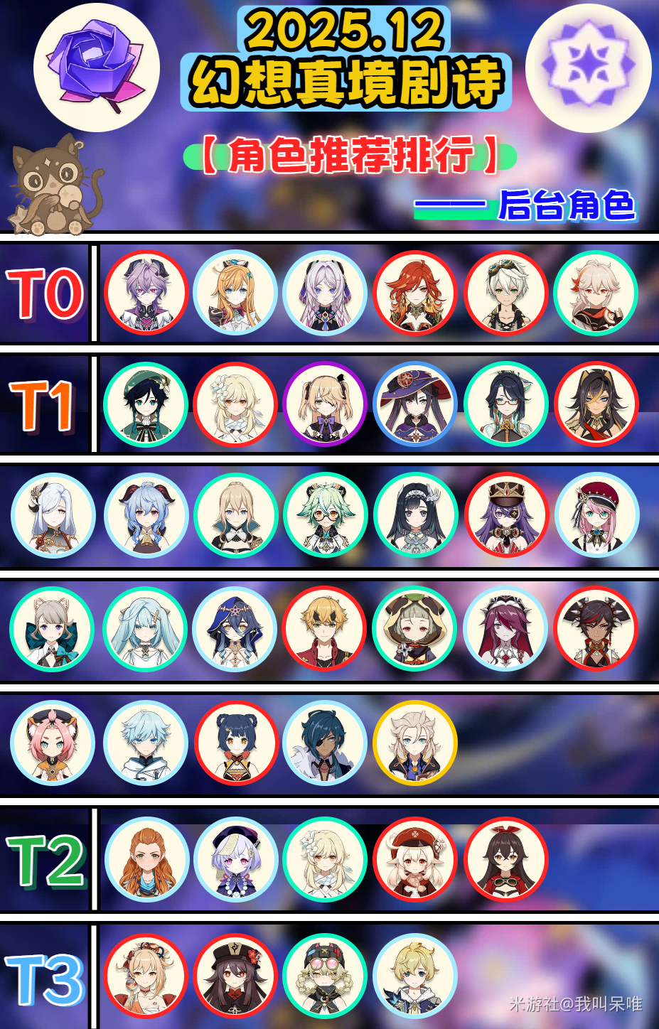 本期能使用的输出角色较多,但单人极强的角色较少;好在4星角色数量很多,且常驻角色能上6位,人头比较容易凑,带几个练好的角色,满星应该不成问题。