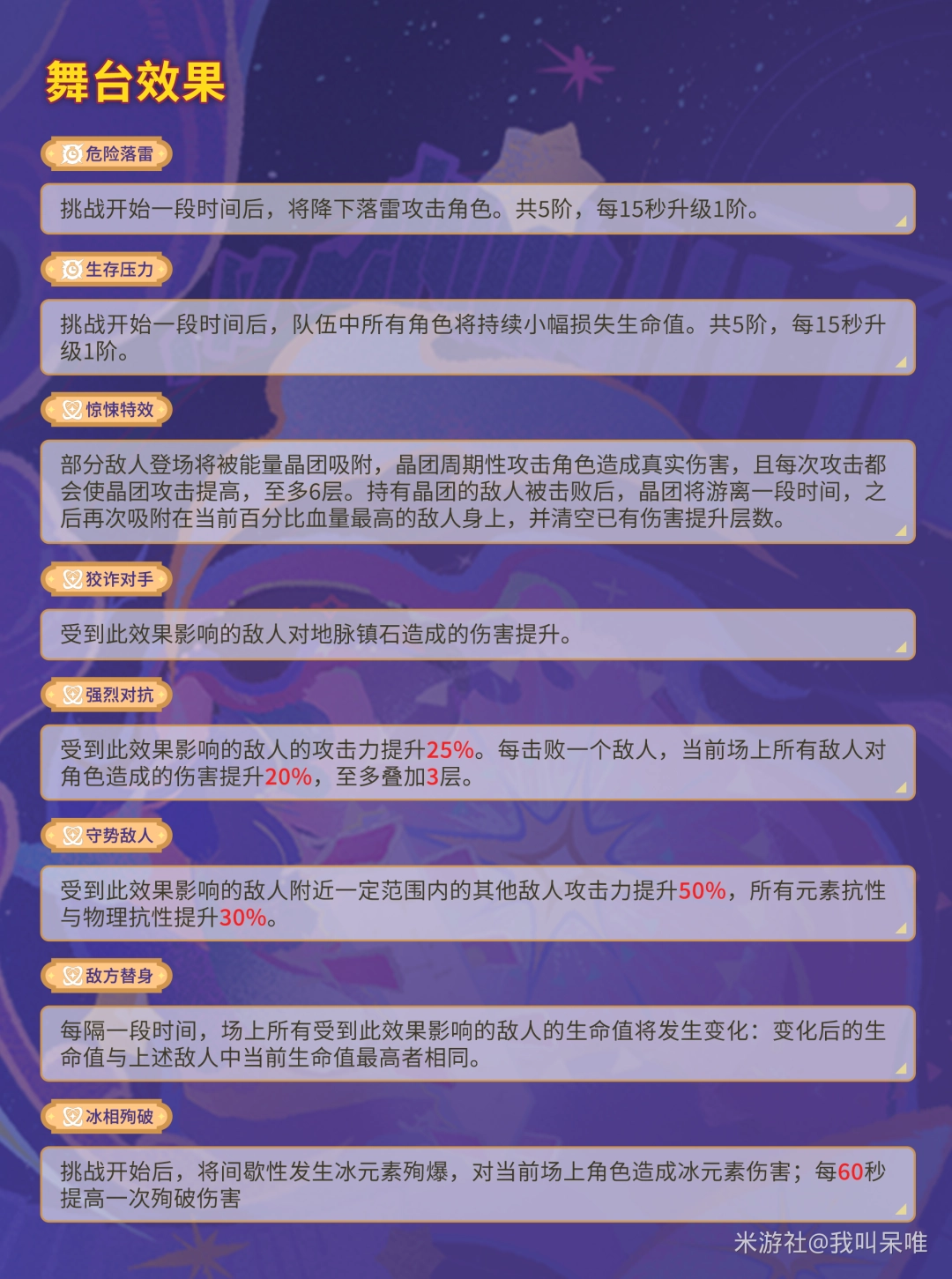 (3)建议都在圈内输出,可以吃增伤后破盾,部分锁面板技能(如香菱大招)可在其中提前放大!