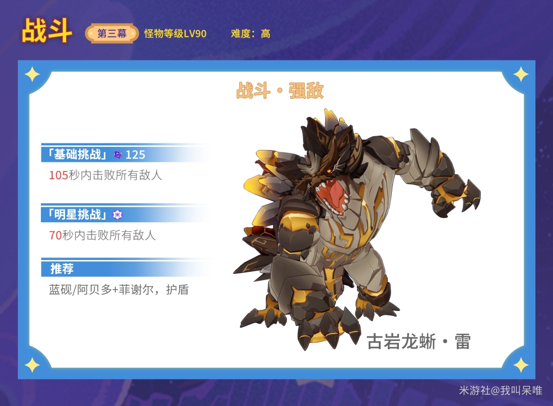 推荐带火元素角色破盾,也比较需要对群的队伍。