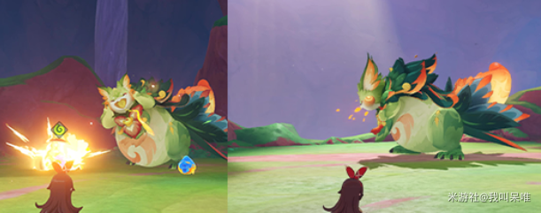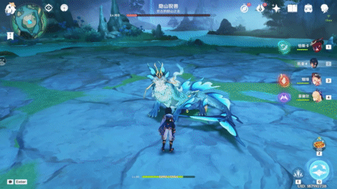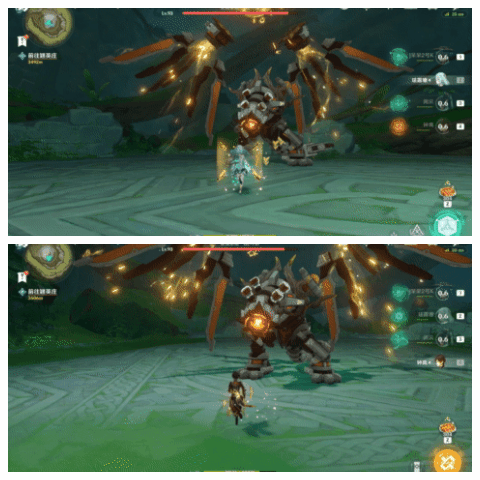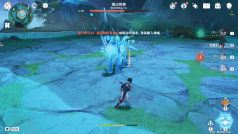 不仅如此,猊兽在释放水大招后,若血量大于40%,还会接着使用自带水附着的位移技能,同样的,只要及时用冰元素攻击,就能无脑破机制并且快速击杀。