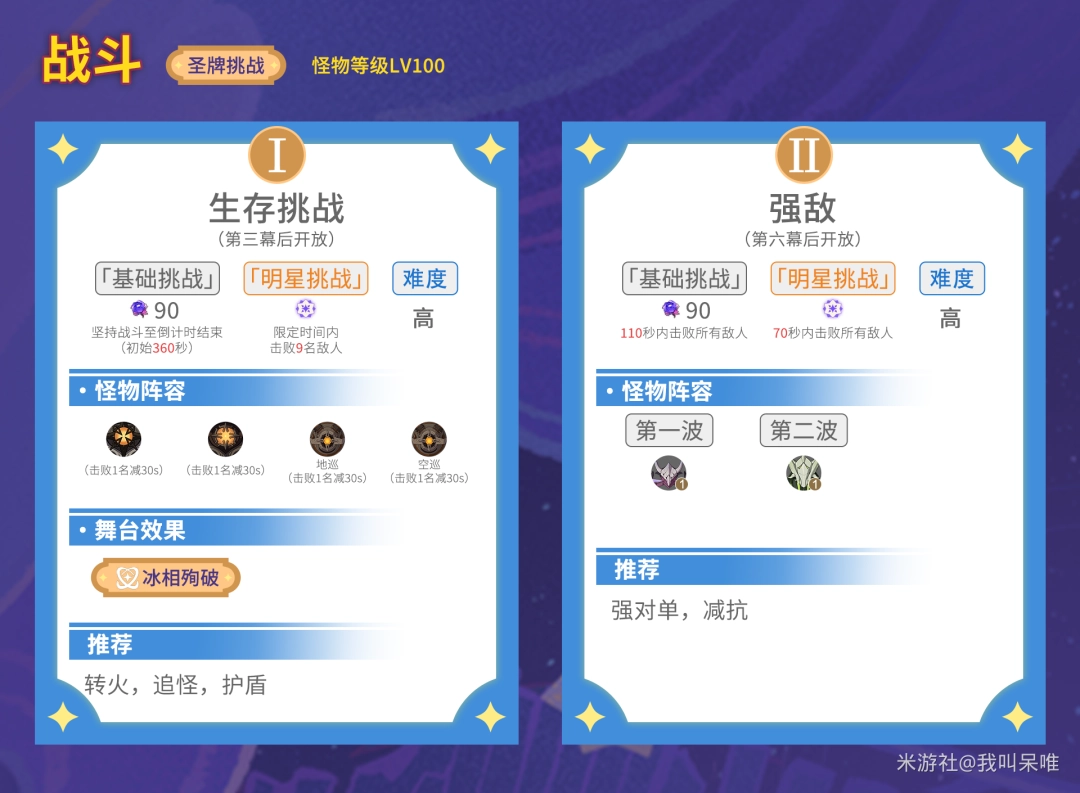 圣牌挑战Ⅰ、Ⅱ分别在通过3、6幕时出现,可根据自己队伍安排随时挑战。