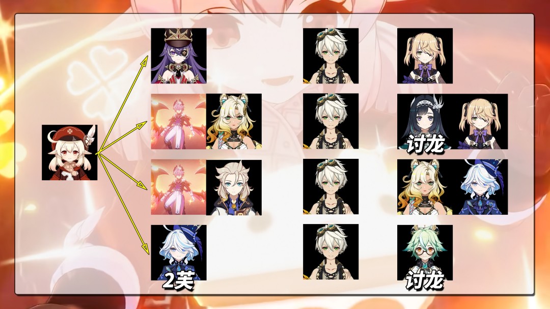 4金——可莉+2命芙宁娜+班尼特+讨龙砂糖。