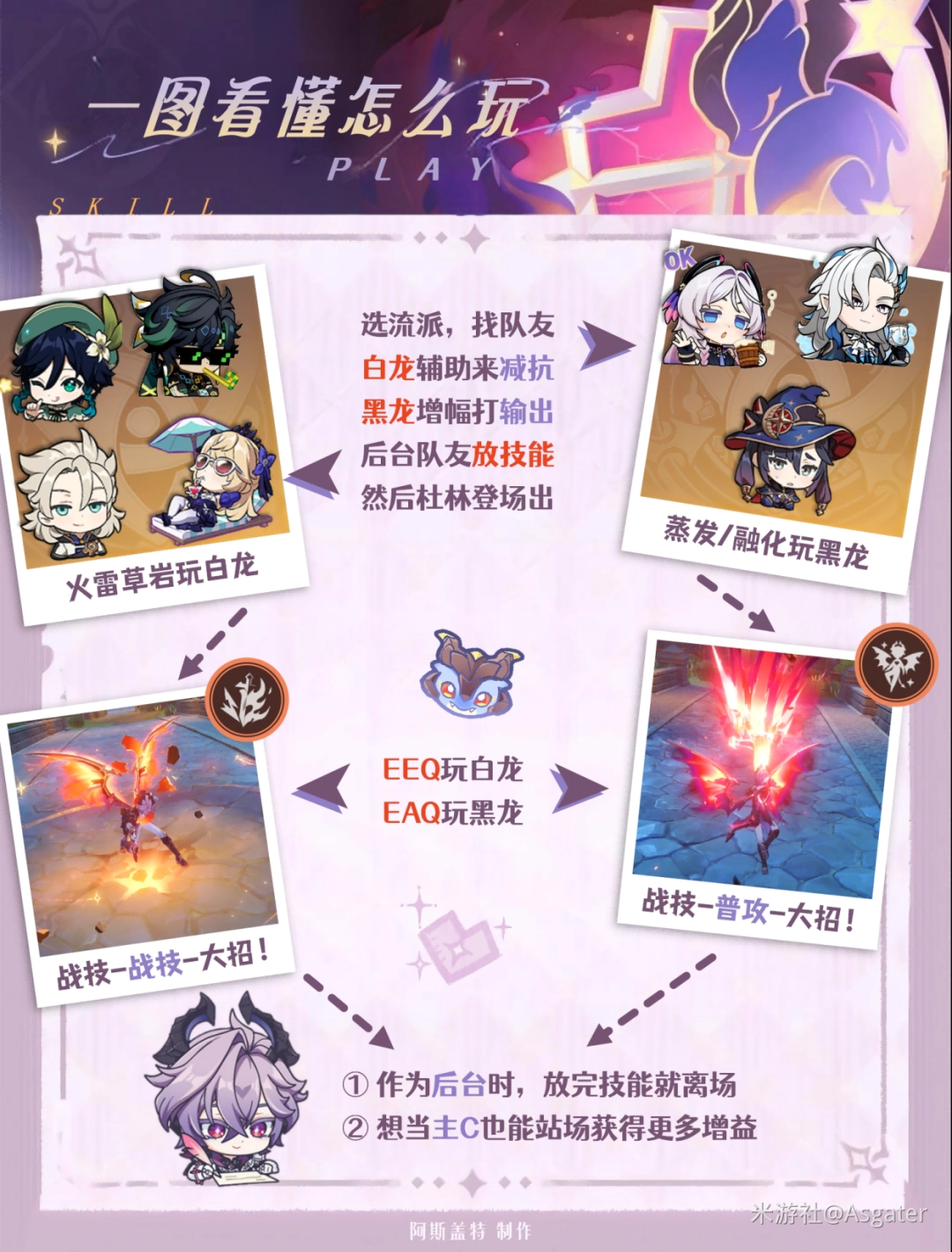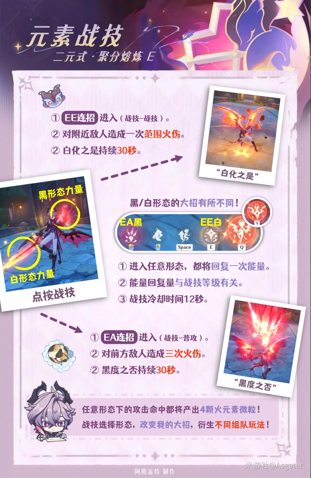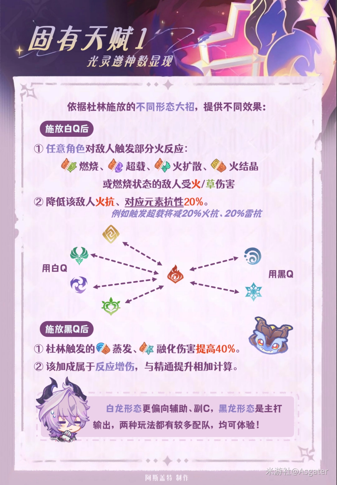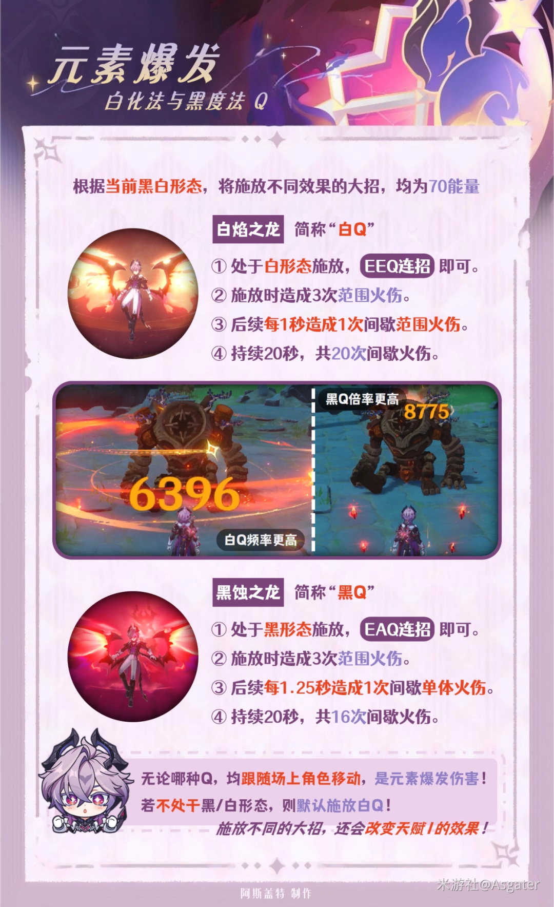 ◆大招的机制也不算多,与天赋1结合来看,搭配火雷/火草/火岩/火风队友时优先白Q、搭配水、冰队友时优先黑Q。