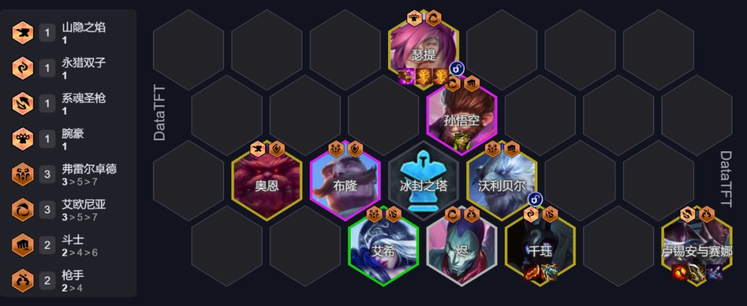 阵容简介:刚需艾欧效果是给钱/给经验的去玩,这样4-1快速上8D,前排只放一个弈子解锁瑟提,后续D一点,用7艾欧+2迅击上9很快,慢慢把7艾欧拆成5艾欧,再拆成3艾欧,空的位置换成推荐的高费卡