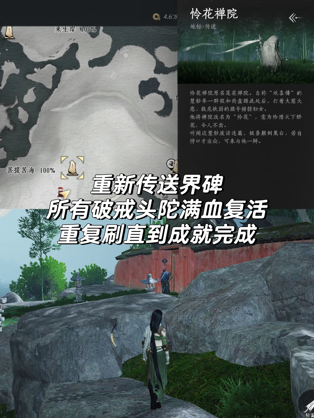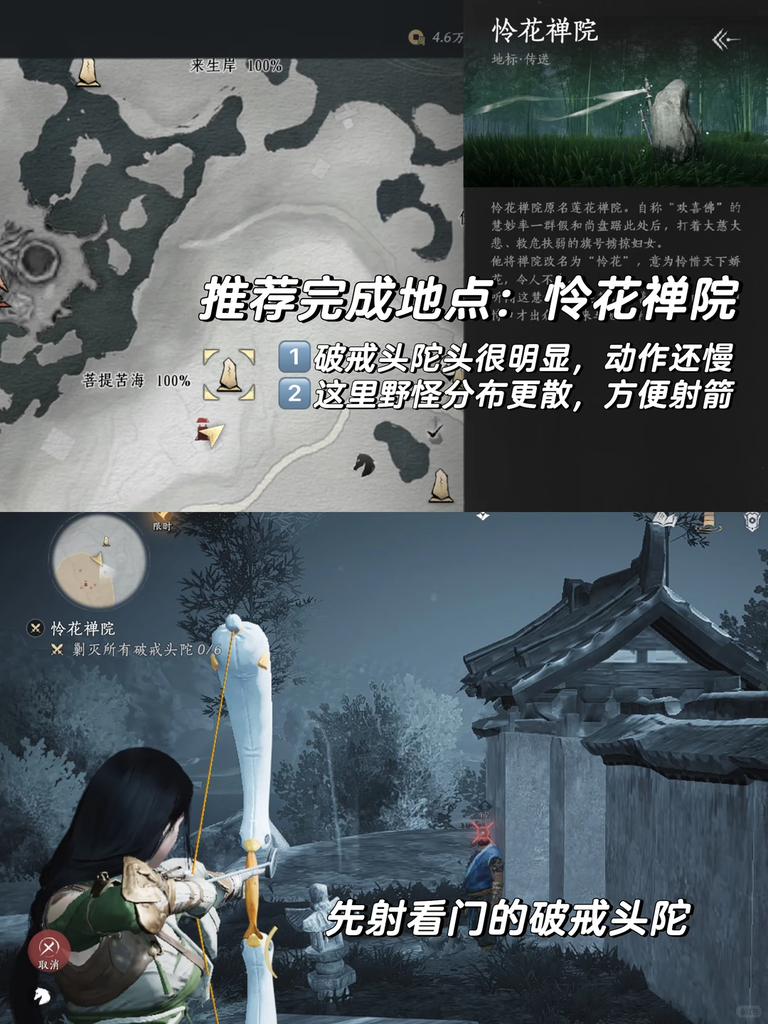 这个是成就列表没有显示的成就试了很多小怪,找到了快速获取的办法来到怜花禅院,拉满蓄力射击。