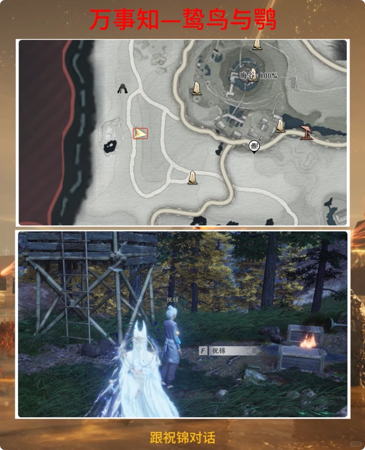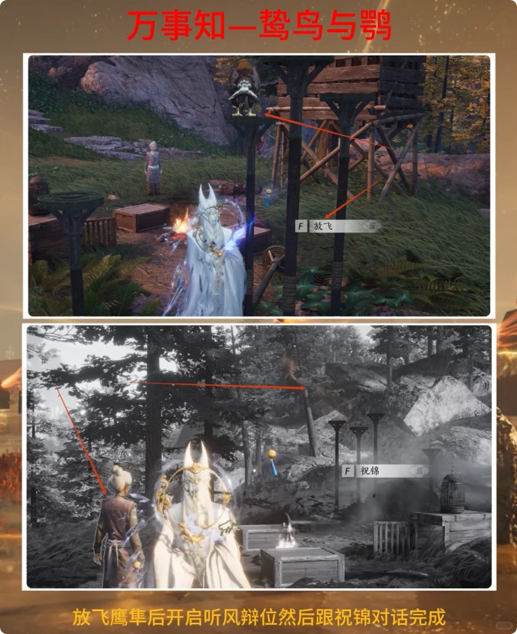 放飞鹰隼后开启听风辩位然后跟祝锦对话完成