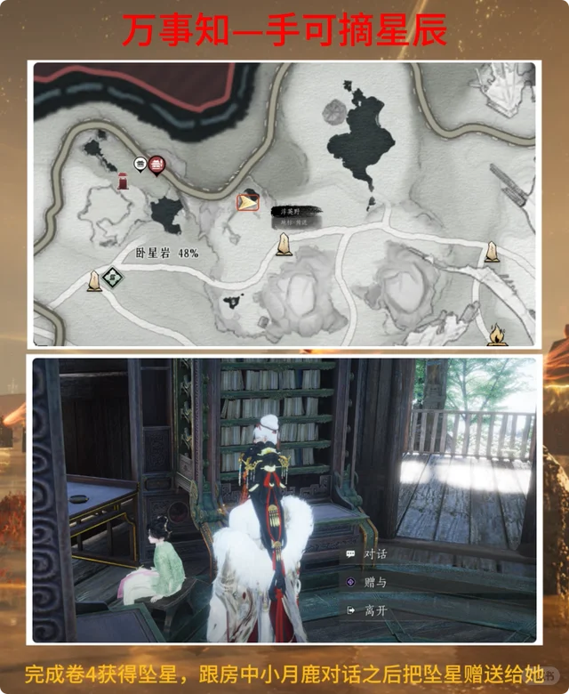 完成卷4获得坠星,跟房中小月鹿对话之后把坠星赠送给她