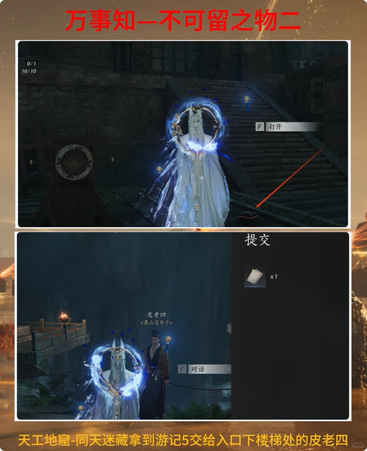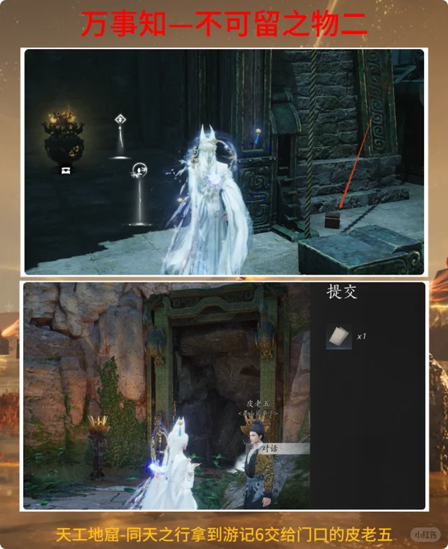 天工地窟-同天迷藏拿到游记5交给入口下楼梯处的皮老四