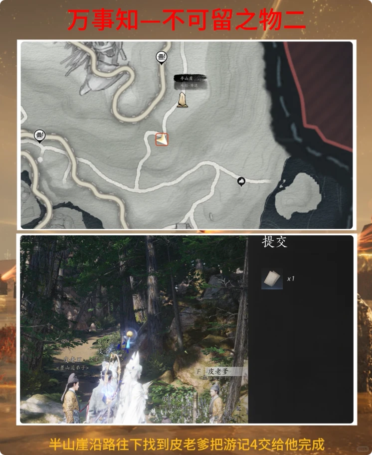 半山崖沿路往下找到皮老爹把游记4交给他完成