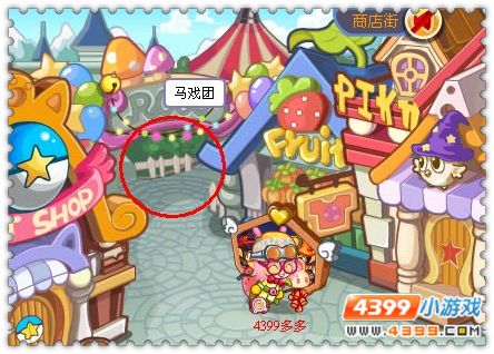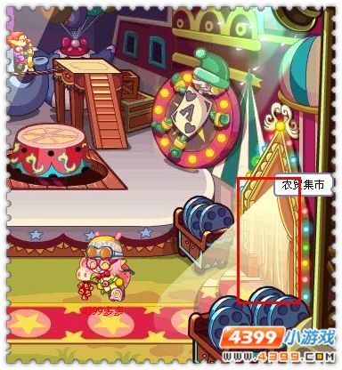 农贸集市还可以从马戏团的传送门进入哦~首先来到商店街,从宠物道具店和皮卡服装店中间的小路进入马戏团