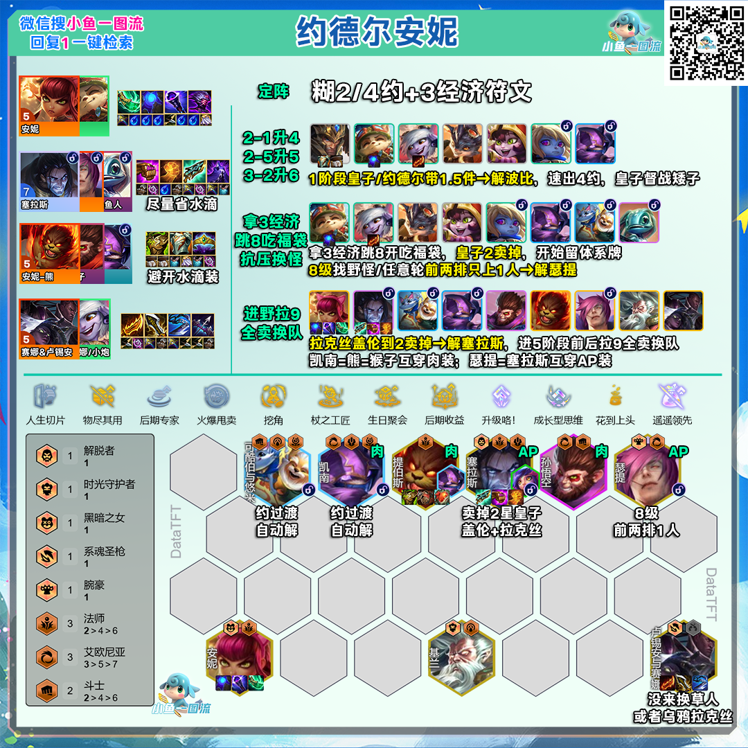 云顶之弈S16版本英雄联盟传奇主题,在新赛季会增加很多新的羁绊和棋子,还有不少老羁绊,老英雄的回归,那么有不少小伙伴好奇新赛季有什么强力阵容,下面就给大家带来s16约德尔安妮阵容推荐。