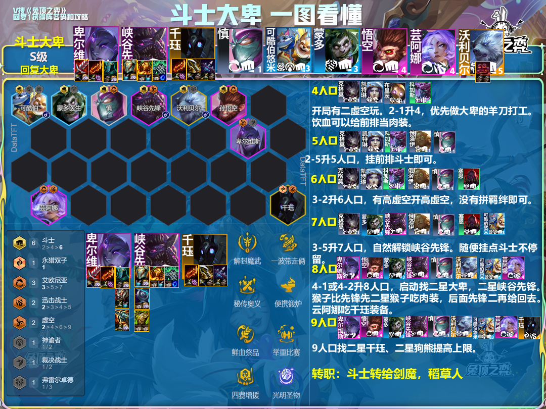 开局有二虚空玩。2-1升4,优先做大卑的羊刀打工。饮血可以给前排当肉装。