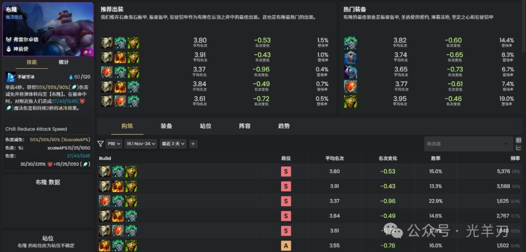 推荐石像鬼石板甲,振奋盔甲,狂徒铠甲作为布隆在云顶之弈中的最佳出装。这也是布隆最热门的出装。