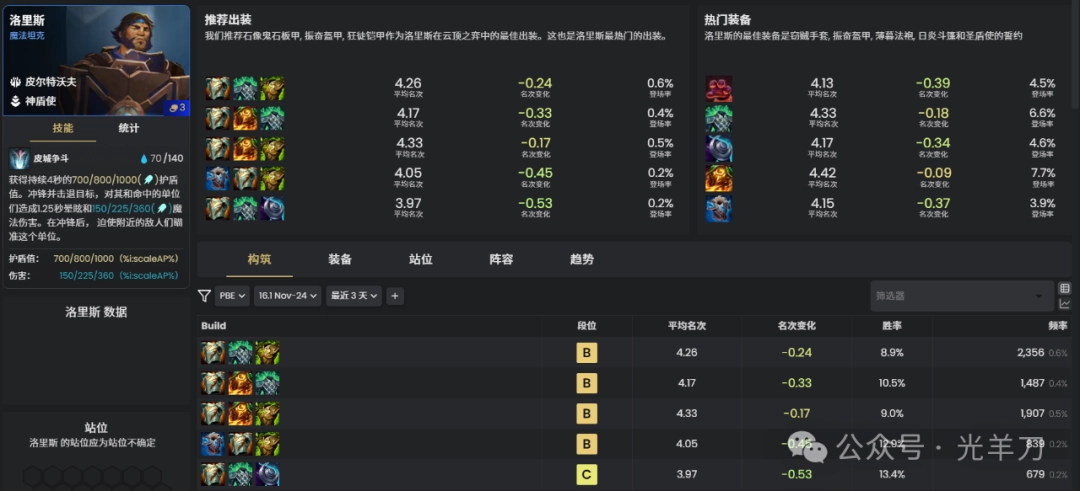 推荐石像鬼石板甲,振奋盔甲,狂徒铠甲作为洛里斯在云顶之弈中的最佳出装。这也是洛里斯最热门的出装。