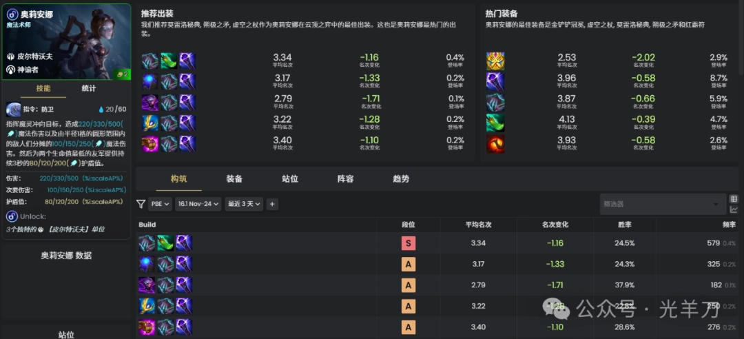 推荐莫雷洛秘典,朔极之矛,虚空之杖作为奥莉安娜在云顶之弈中的最佳出装。这也是奥莉安娜最热门的出装。