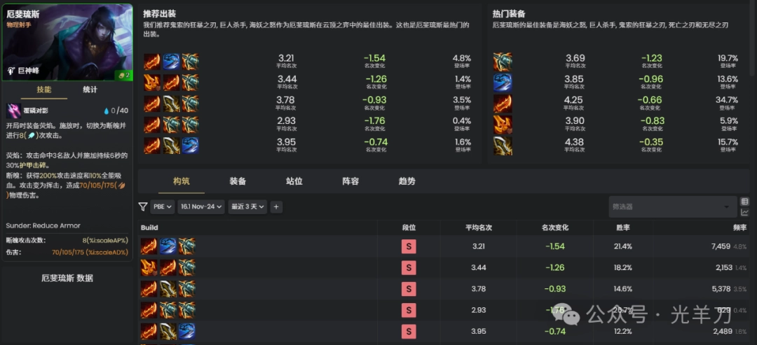 推荐鬼索的狂暴之刃,巨人杀手,海妖之怒作为厄斐琉斯在云顶之弈中的最佳出装。这也是厄斐琉斯最热门的出装。
