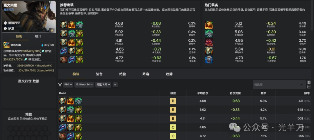 云顶之弈s16嘉文四世装备推荐