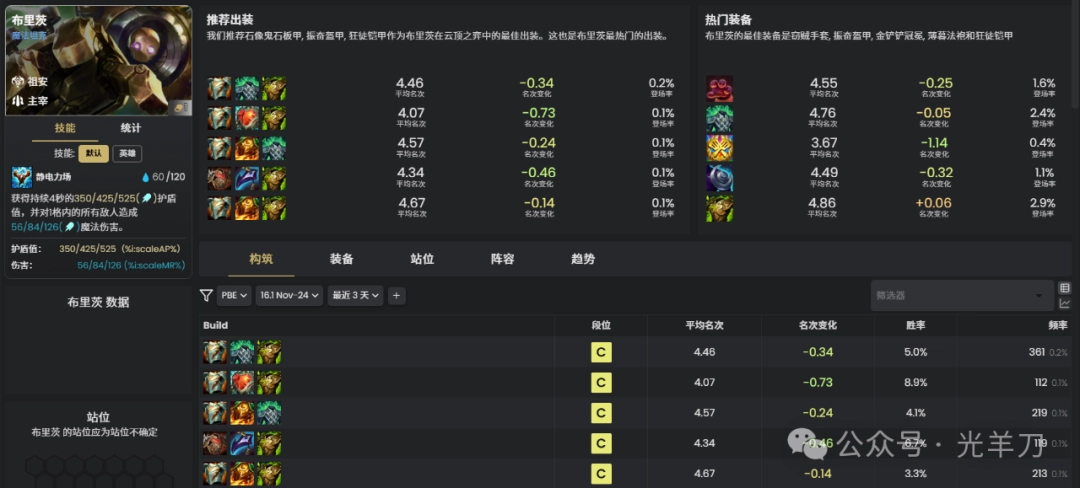 推荐石像鬼石板甲,振奋盔甲,狂徒铠甲作为布里茨在云顶之弈中的最佳出装。这也是布里茨最热门的出装。
