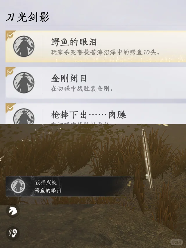 在萧音千浪出来前全靠射箭杀鳄鱼菩提苦海全是沼泽 特别难跑杀死10头鳄鱼就可以解锁成就如果之前没做这个成就可以去试试啦