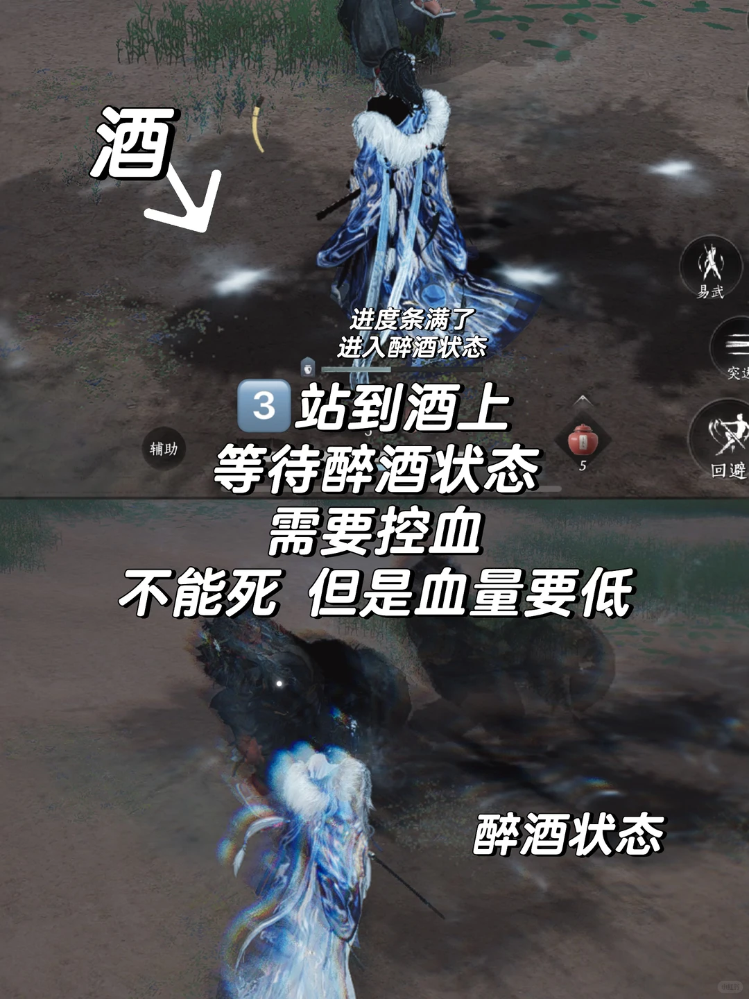 3,站在boss撒的酒上进入醉酒状态,同时控血