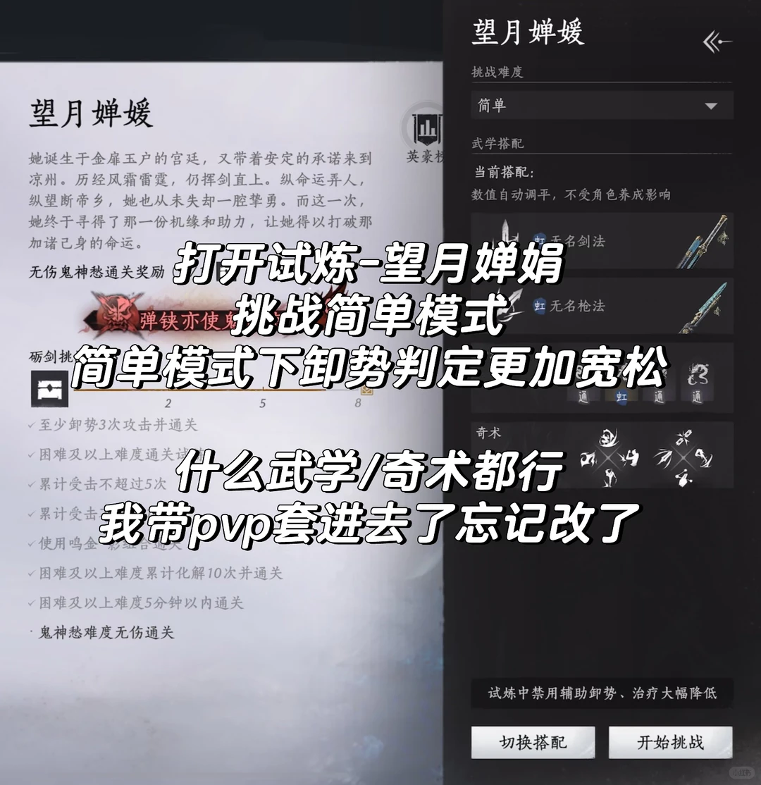 试炼选简单就可以完成简单模式对卸势判定没有那么严格高手打的慢一点 机制出现位置比较靠后