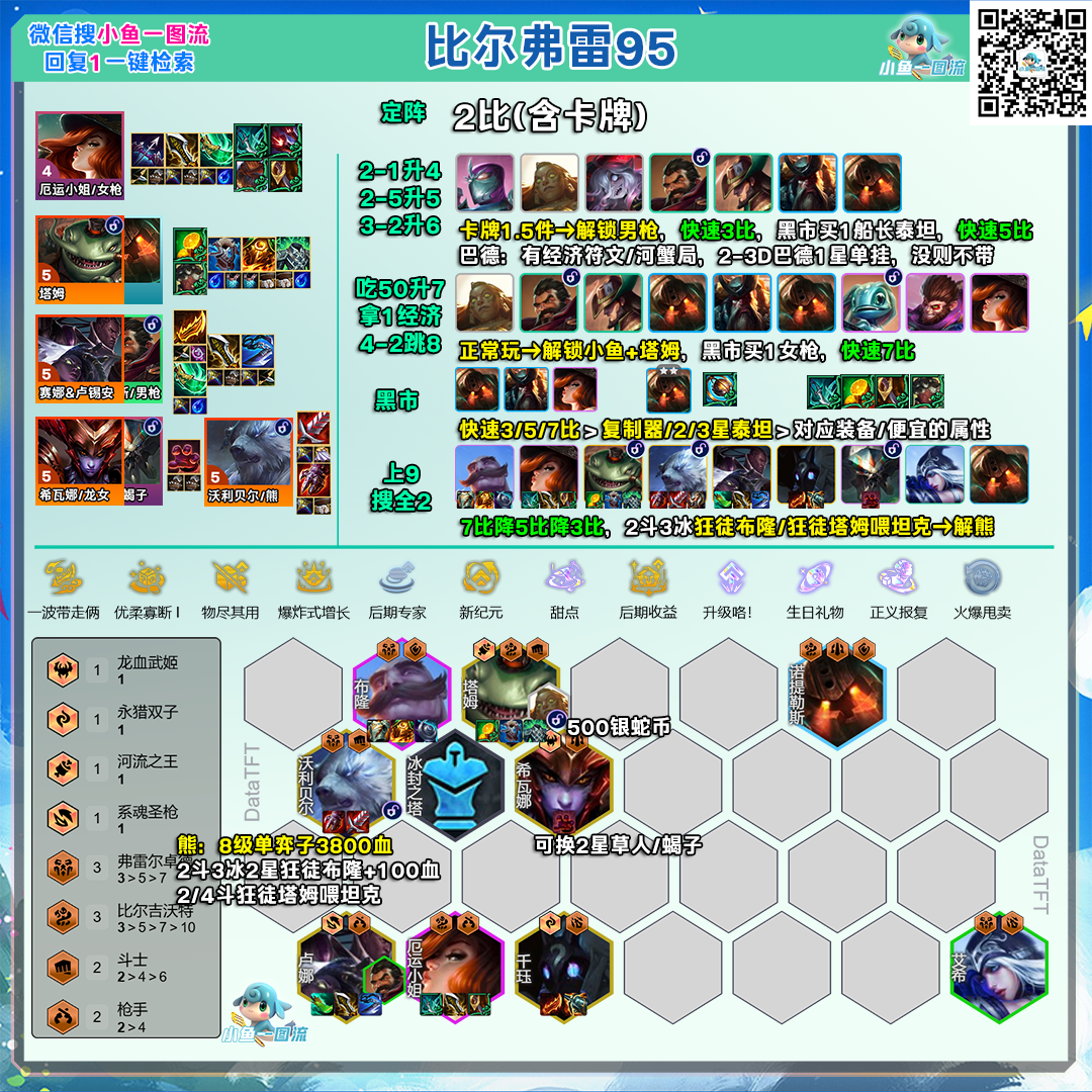 云顶之弈S16版本英雄联盟传奇主题,在新赛季会增加很多新的羁绊和棋子,还有不少老羁绊,老英雄的回归,那么有不少小伙伴好奇新赛季有什么强力阵容,下面就给大家带来s16比尔弗雷95阵容推荐。