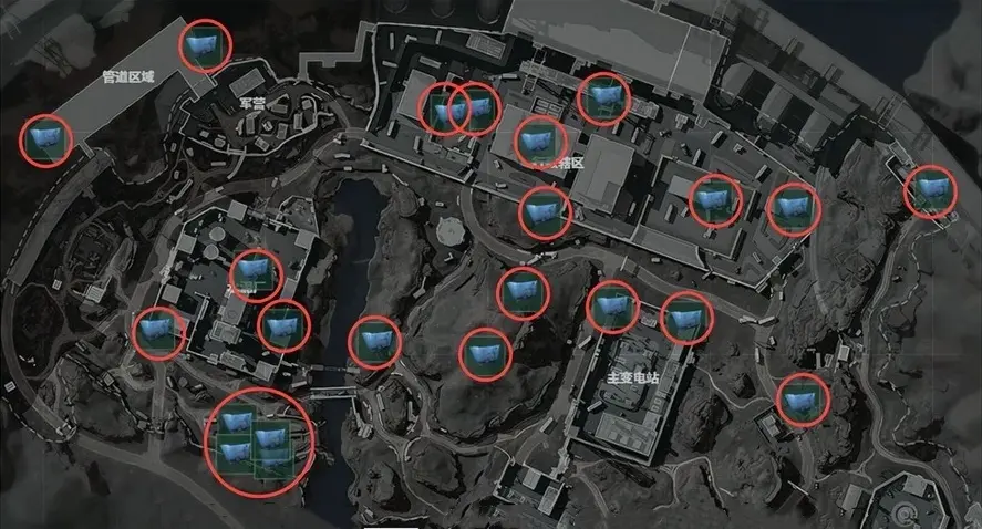- 核心区域:游客中心房间密集,外围道路旁刷新率高;大坝下方是经典物资区,点位丰富。