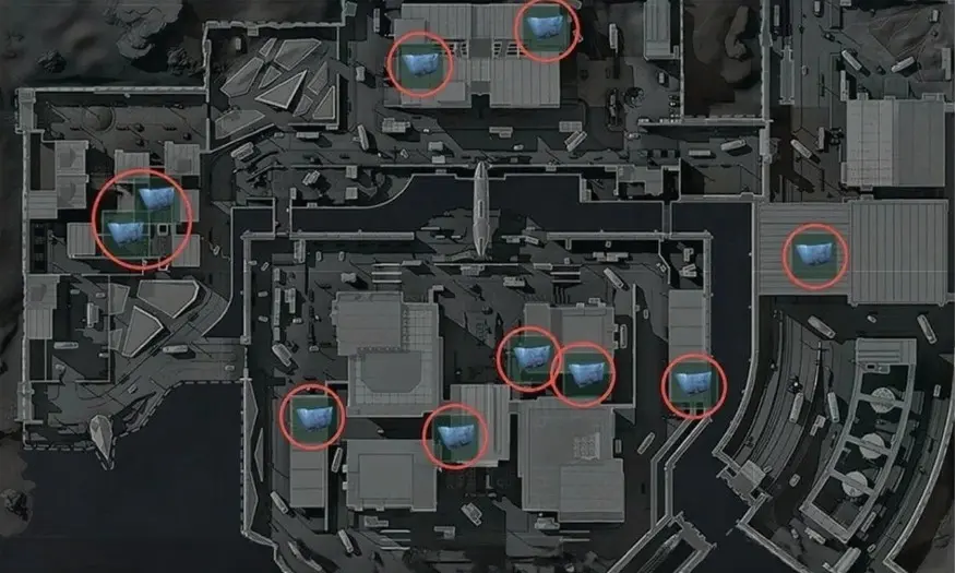 航天基地 (约10个点):点位相对较少且位置固定,多位于宿舍房间、中控桥下通道角落、蓝室/黑市外围马路及拉闸撤离点附近。