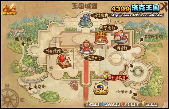 小洛克们点击当前区域场景中间上方的名字,就可以打开哦!如下图是王国城堡的区域地图。