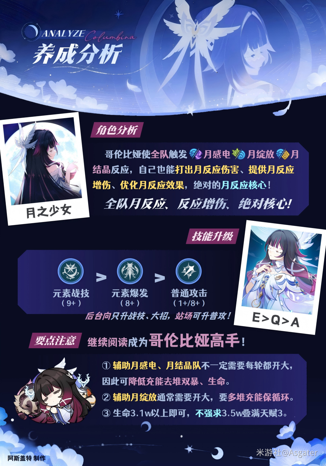 哥伦比娅开源了月曜反应,只要她在队伍,所有角色触发的感电、绽放、水结晶反应都将转变为月曜反应,获得对应效果。那么有不少小伙伴好奇哥伦比娅怎么培养,下面就给大家带来哥伦比娅培养攻略。
