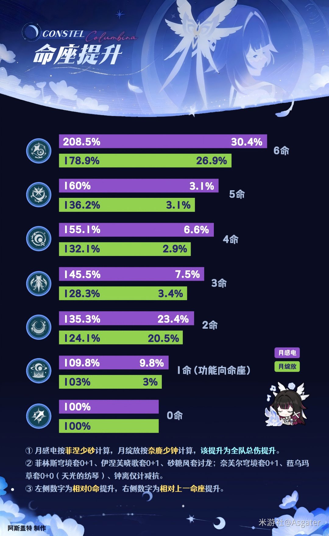 ◆ 各个命座均有擢升提升,目前属于独立区间,使伤害直接进行提升。
