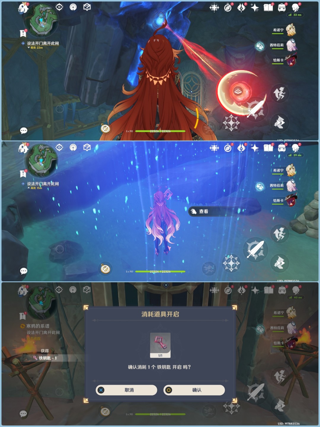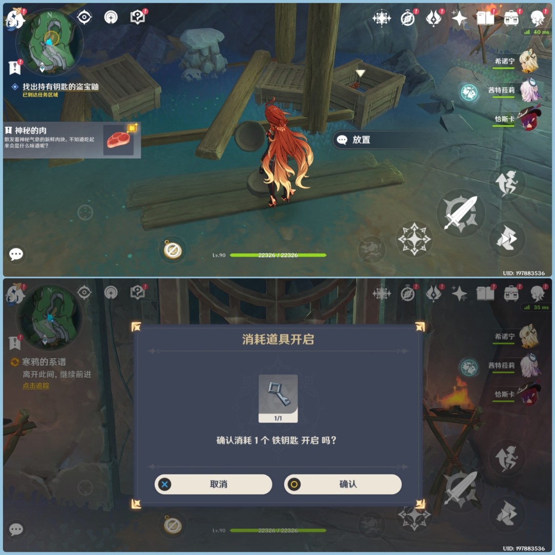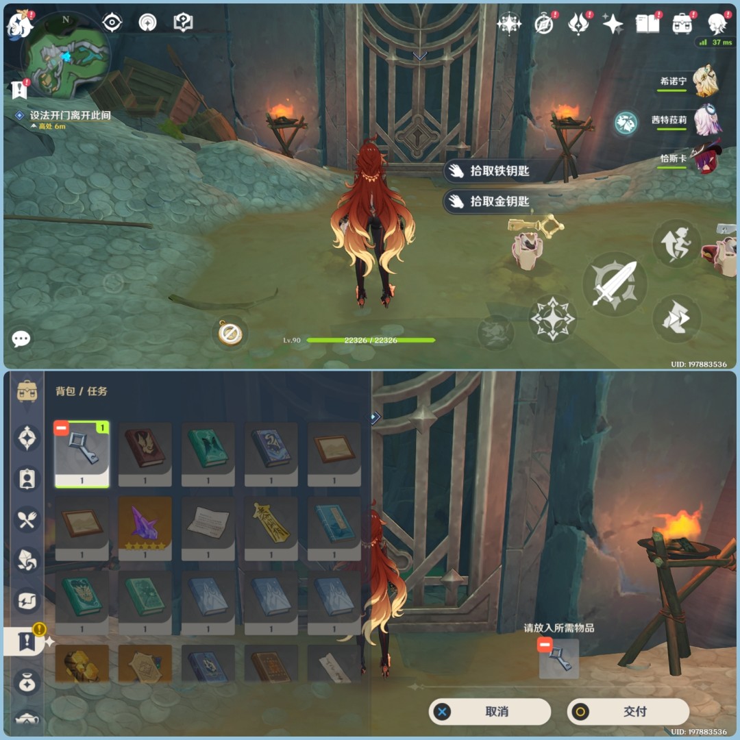 6.继续前进,来到门扉右侧高处,利用月矩力攻击巨石获取钥匙