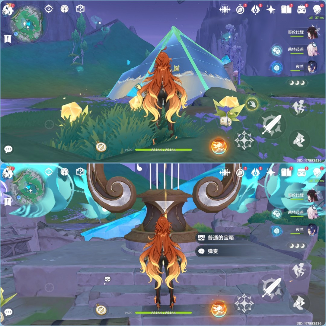 2.使用曼陀草击碎屏障,弹奏竖琴,获得普通宝箱*1