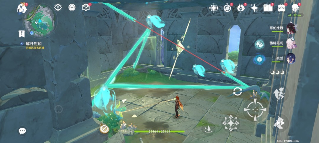 5.使用朏耀果打开屏障放出仙灵,同样的操作璇珑花旋转棱晶,完成后获得精致宝箱*1