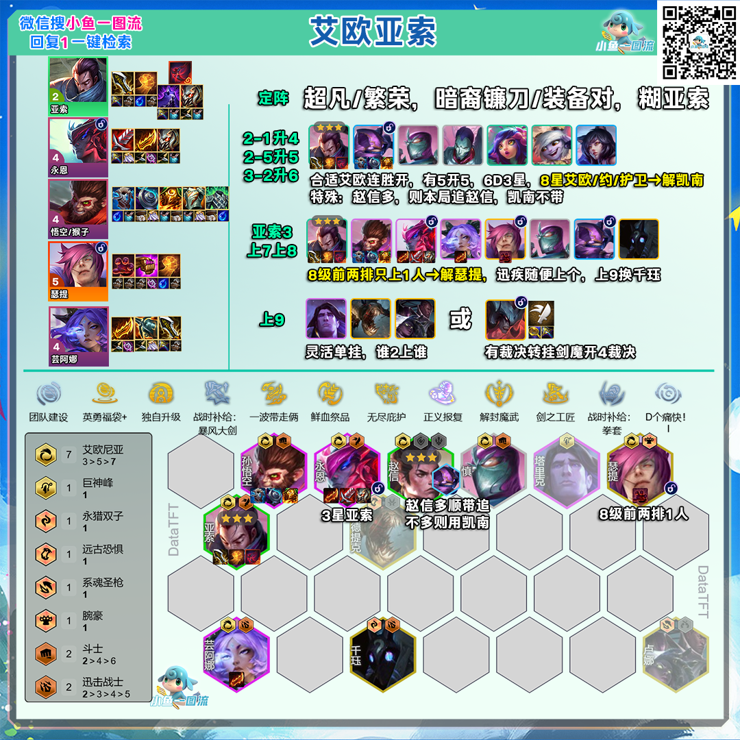 定阵条件:2-3张亚索、本局艾欧为超凡/繁荣,散件偏物理/有解封魔武